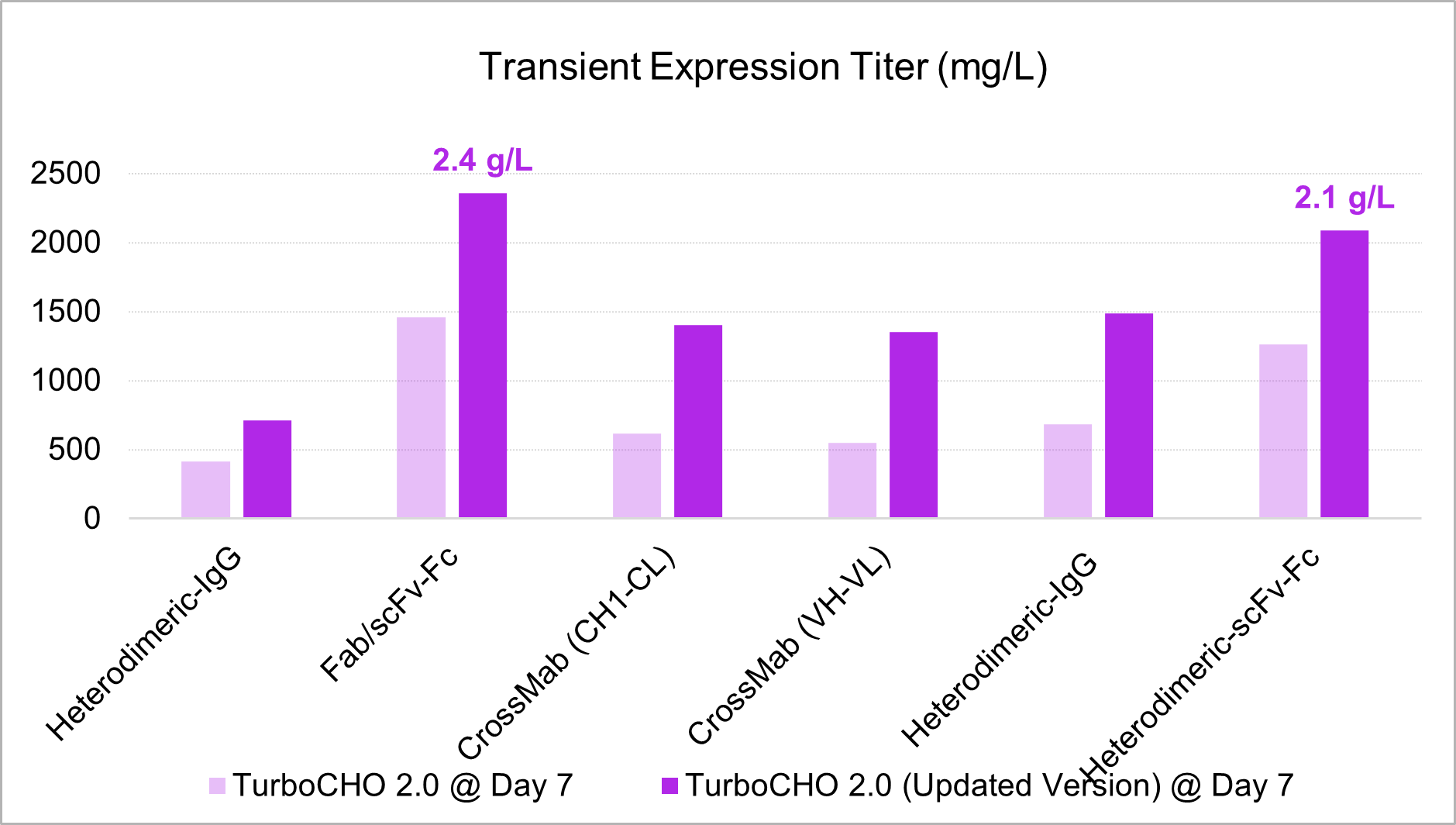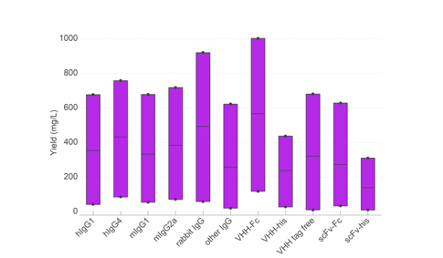 TurboCHO™ delivers high yield and purity across a wide range of antibody formats:
