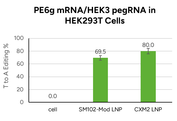 | 6 | SM102-LNP | HifiCas9 | TRAC | HEK293T 97%, T cells 61% , HepG2 88% |