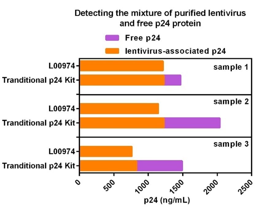 Lentivirus Titer p24 ELISA Kit Pro can remove free p24 and only detect p24 protein on lentivirus capsid